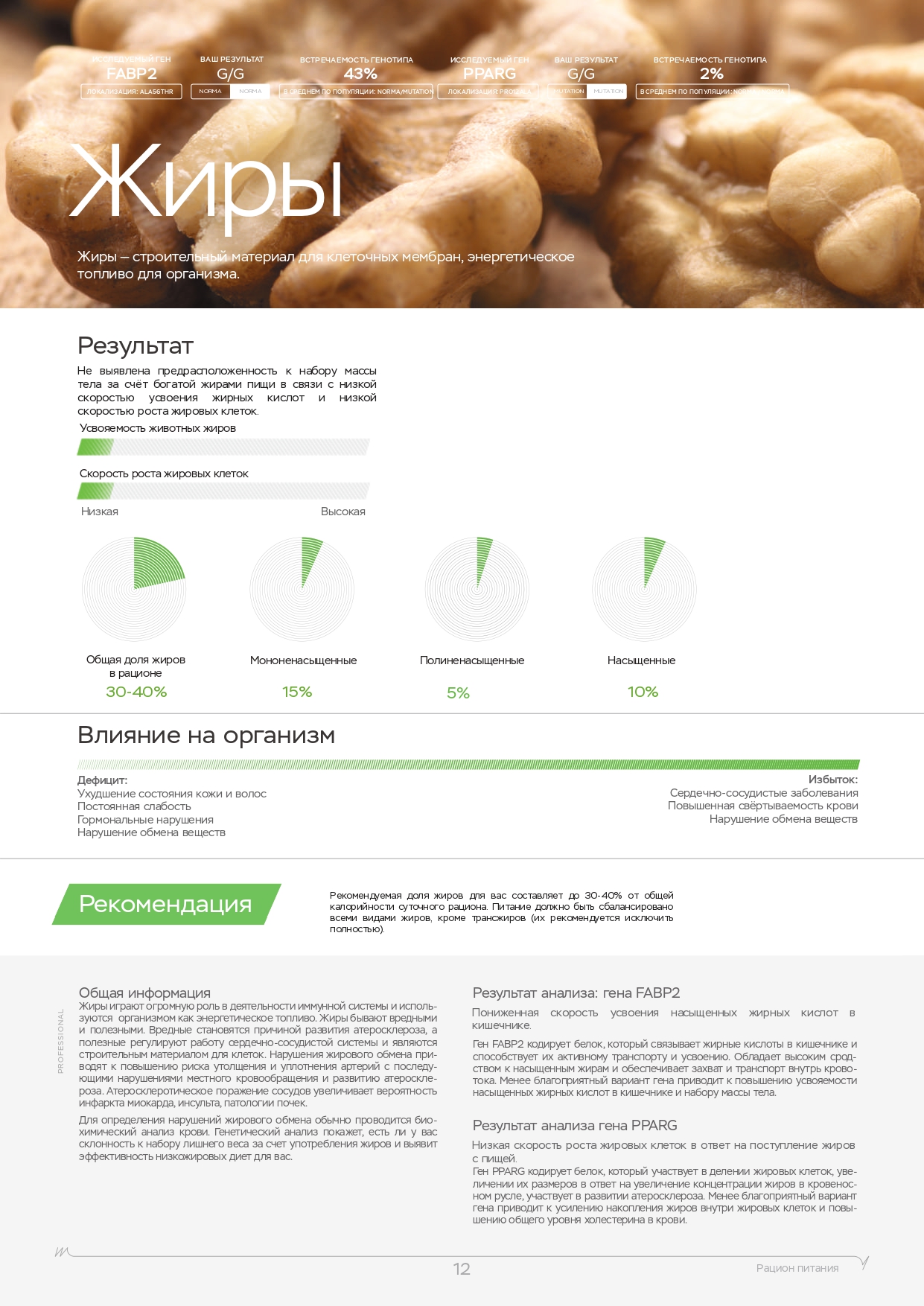 Этот ДНК анализ показывает влияние наиболее важных 10 генов на психическое и эмоциональное состояние. Именно они регулируют выработку гормонов, работу нейромедиаторов. Используйте знания о природных свойствах своего организма для борьбы со стрессом, повышения работоспособности и общего тонуса. Каждый человек индивидуален, поэтому мы рекомендуем пройти наш генетический нейро тест в Сасово.